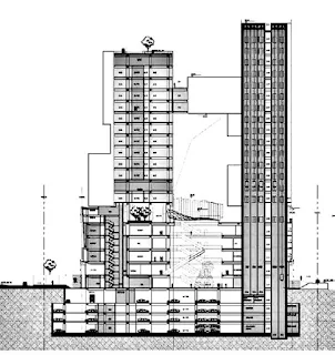 An elevated transitional platform is set between the podium and towers, drawing silhouette of an ancient vil- lage with metallic materials to create a striking contrast between the new and the old. While separate circula- tion to oices and residents are provided, users are also encouraged to access the towers via the rooftop gardens on the platform, and to relax with the pleasant views and refresh- ing greens around.