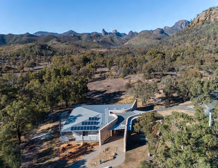 Located 20km west of Coonabarabran NSW, the Park and original Visitor Centre were devastated by catastrophic fires in 2013. The project team sought to create something extraordinary and were committed to understanding the opportunity this building presented in the minds of the community. In response to the community’s vision and the unique place of the project, the team worked in collaboration with National Parks and the local Aboriginal elder to develop the interpretive aspects of the centre. They have delivered an inviting and beautiful piece of architecture that will help visitors be present in the place. Powerful, curving, stone-clad walls celebrate the iconic volcanic dykes and rock formations. The main space provides unobstructed views of the notable rock formations, ‘Breadknife’ and ‘Belougery Spire’.